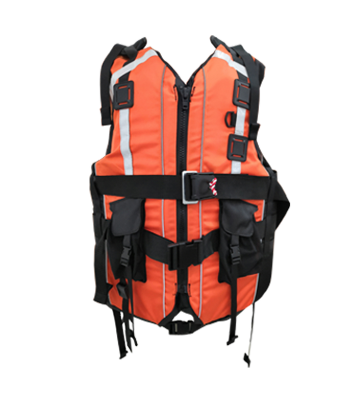 面料采用方形針織壓力點和1680D材質的Cordura?面料使得該款救生衣足夠應對復雜的水域活動。采用背心式設計,胸襟采用YKK塑鋼開口拉鏈,并使用塑料拉頭浮力片固定于布料夾層內,后領口增加手提式松緊提拉帶設計,方便于攜帶。