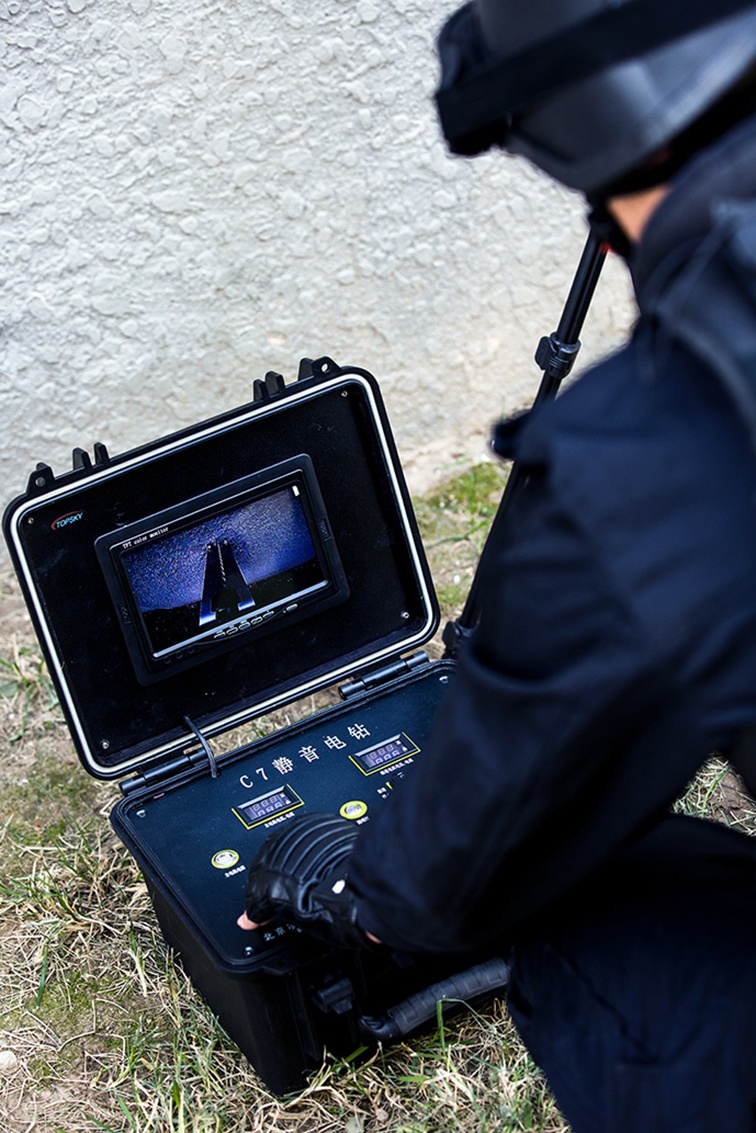 整套完整的系統(tǒng)裝在一個攜帶箱內(nèi),可以迅速安裝設置,操作簡便。在反恐行動中,對房間內(nèi)部情況的了解至關重要。靜音電鉆可以在不被犯罪分子察覺的情況下在墻上鉆孔,然后伸入蛇眼探頭觀察房間內(nèi)部狀況。
