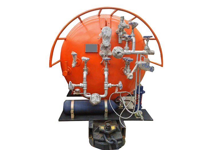 液態(tài)二氧化碳滅火裝置,采用平板車為運(yùn)載平臺,搭載液態(tài)二氧化碳滅火模塊,采用液態(tài)二氧化碳為滅火劑,運(yùn)輸至井下火區(qū)近附,經(jīng)自增壓調(diào)控系統(tǒng)實(shí)現(xiàn)罐內(nèi)穩(wěn)壓,并通過遠(yuǎn)距離輸送管路將液體從罐內(nèi)向密閉火區(qū)噴射,利用其急速膨脹氣化和吸熱效率高的物理特性,可實(shí)現(xiàn)惰性降氧,吸熱降溫,吸附阻化等功能,從而可快速進(jìn)行井下煤層自燃火災(zāi)的預(yù)防與撲滅等。