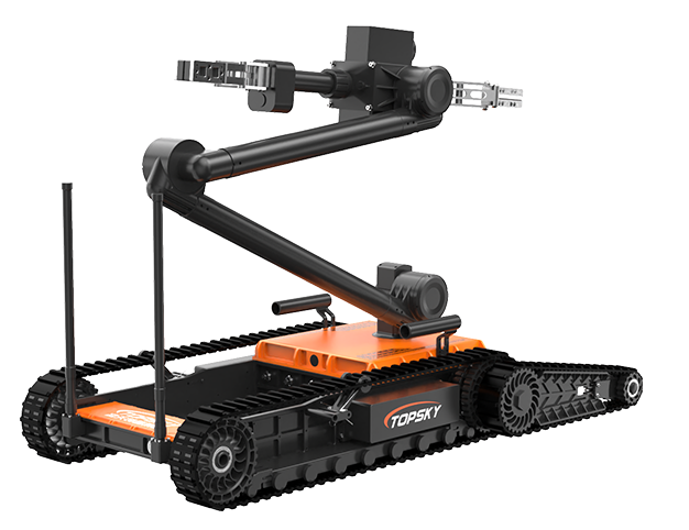 排爆機器人主要是用來處理爆炸物相關(guān)工作的排爆式機器人,也可用于偵察人難以達到的地形的一種機器人。7自由度排爆機械手能實現(xiàn)不同角度旋轉(zhuǎn),近端最大可抓舉16KG的重物,小手爪可抓取3KG重物,機械臂可裝載爆炸物銷毀器,可現(xiàn)場摧毀爆炸物,底盤采用履帶+單擺臂結(jié)構(gòu),能適應(yīng)各種地形快速作戰(zhàn)部署。同時機器人配備有線控制可以網(wǎng)絡(luò)干擾情況下通過有線遠距離作業(yè)。排爆機器人可與配件一同使用,包括銷毀器(例如29mm),爆炸物的遠程引爆控制系統(tǒng)等。