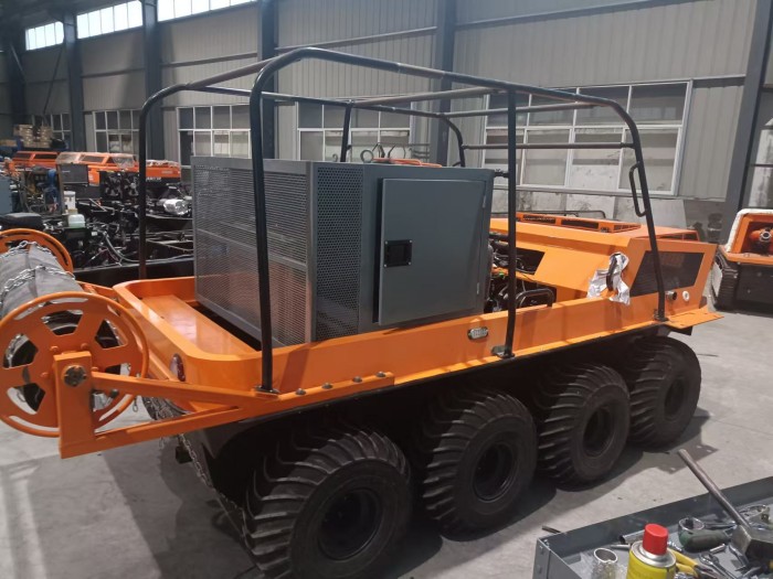 在復(fù)雜惡劣的地形條件和自然環(huán)境下,水陸兩棲全地形車可以讓搜救隊員和攜帶的救援裝備快速到達救援現(xiàn)場,減少徒步帶來提供消耗,完成最后一公里最好五分鐘緊急救援任務(wù)。水陸兩棲全地形車可配備點到絞盤、救援擔(dān)架組件、探照燈、警示燈、警報器、脫鉤、破拆工具等裝備, 給救援團隊提供救援保障,更安全的解救傷員和疏散群眾。