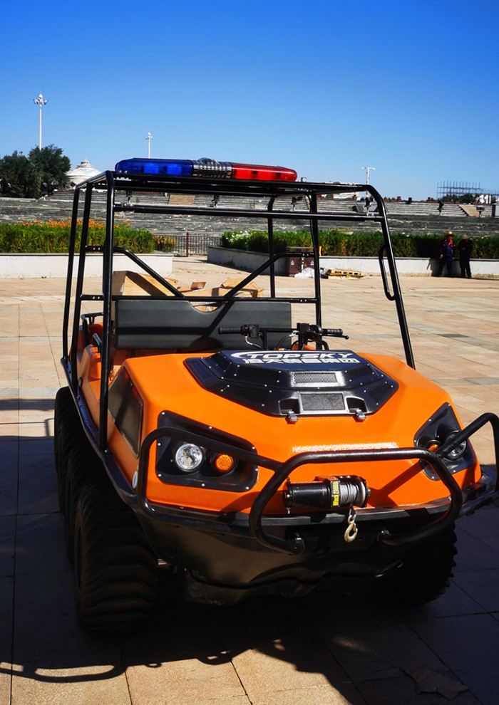以完成可靠的野外應(yīng)急救援為目的,該水陸兩棲全地形車可提供一種安全的運(yùn)輸方式和可靠的運(yùn)載平臺,產(chǎn)品可以在山地環(huán)境、濕地環(huán)境、沼澤環(huán)境、水面環(huán)境、叢林環(huán)境等多種工作環(huán)境下,實(shí)現(xiàn)全天候連續(xù)作業(yè)。并且可以在災(zāi)害現(xiàn)場巡邏勘察、運(yùn)送受傷人員、并有效實(shí)施援救。