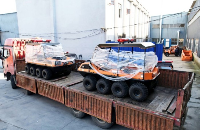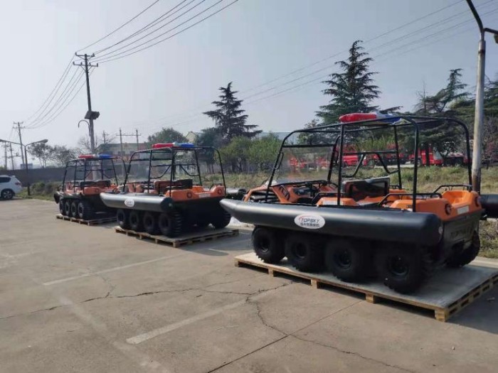 在復雜惡劣的地形條件和自然環(huán)境下,水陸兩棲全地形車可以讓搜救隊員和攜帶的救援裝備快速到達救援現(xiàn)場,減少徒步帶來提供消耗,完成最后一公里最好五分鐘緊急救援任務。水陸兩棲全地形車可配備點到絞盤、救援擔架組件、探照燈、警示燈、警報器、脫鉤、破拆工具等裝備, 給救援團隊提供救援保障,更安全的解救傷員和疏散群眾。